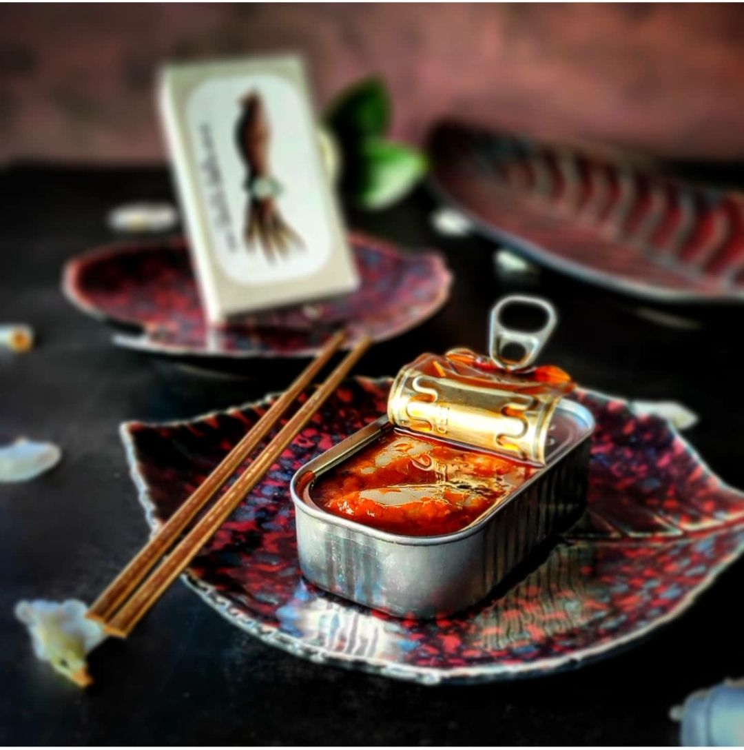 Inhalt: Tintenfisch, Zwiebel, Reis, Tomatenmark, Gewürze ( roter Pfeffer, Nelken, Lorbeer), Salz