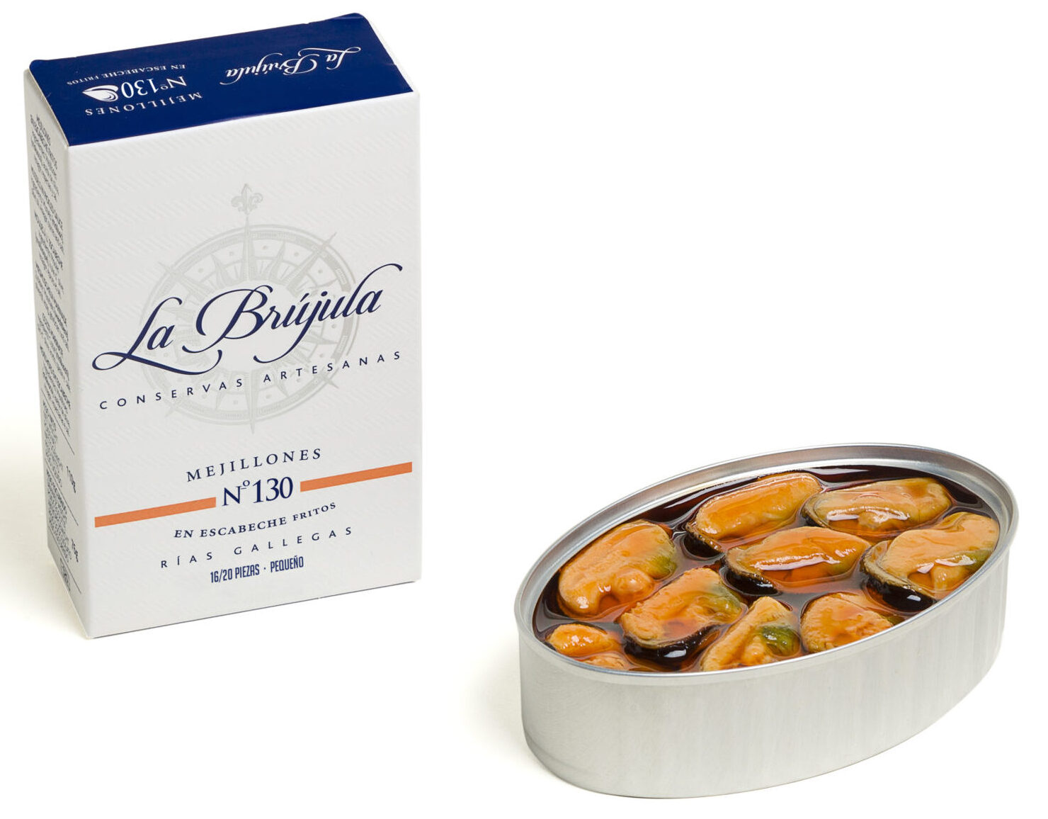 Zutaten: Miesmuscheln (Weichtier), Olivenöl, Sonnenblumenöl, Essig, Gewürze und Salz.