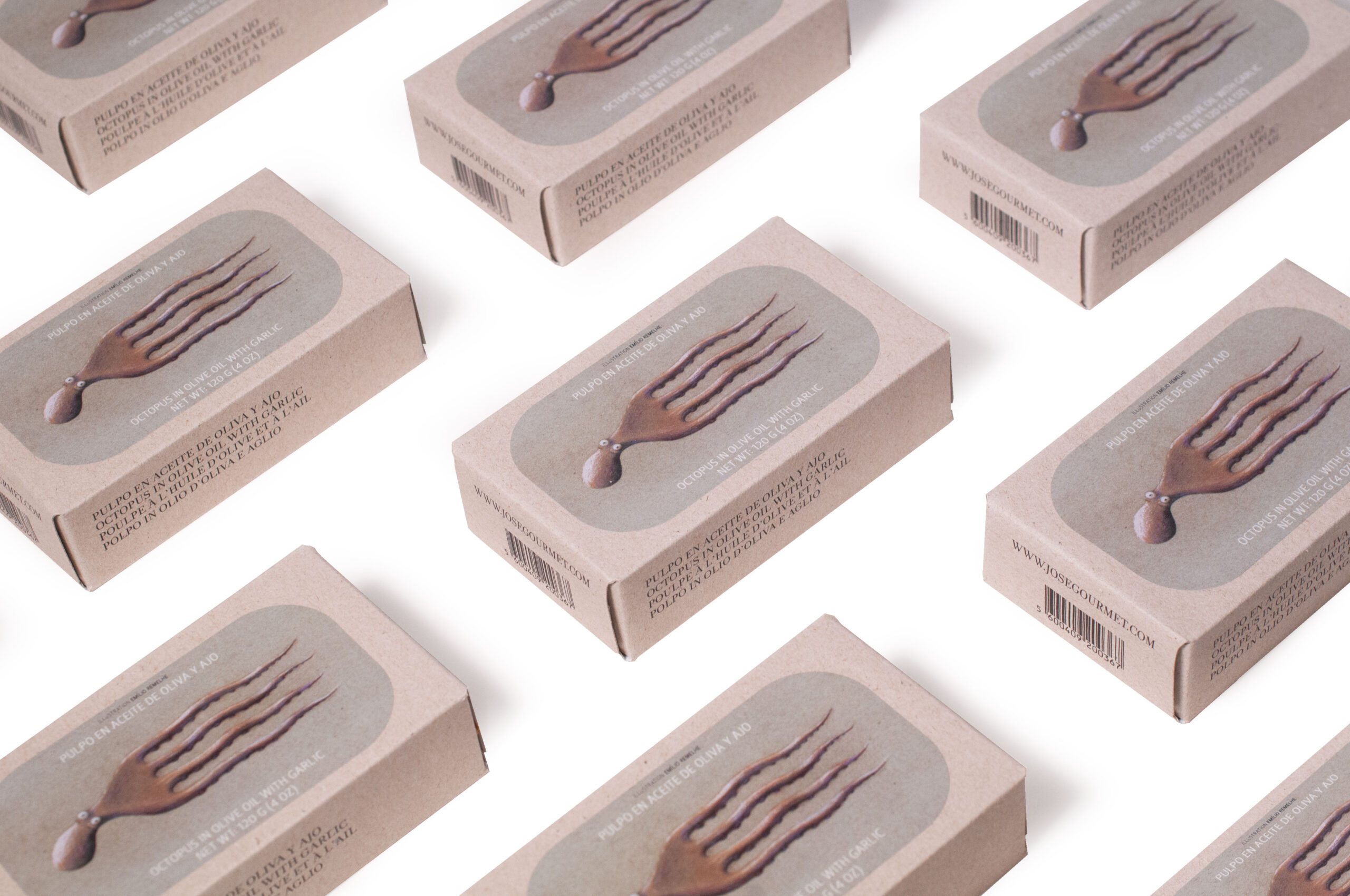 Der Oktopus von Jose Gourmet wurde im Nordosten sowie im östlichen und zentralen Atlantik gefangen und ist mit zwei wesentlichen Zutaten gemischt: Olivenöl und Knoblauch, die ihm ein besonderes Aroma verleihen und seinen ursprünglichen Geschmack unverändert bewahren. Für Liebhaber von Weichtieren ein wahres Gustostückerl.